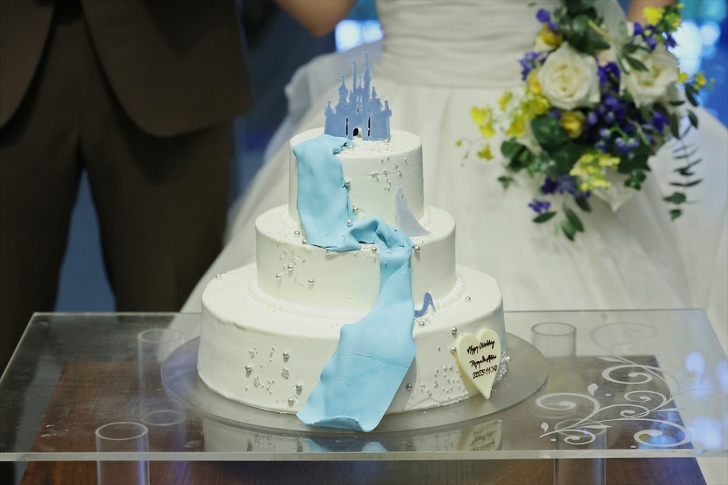 ●【ウェディングケーキ】ホワイト×ブルーの上品で可愛い3段デザイン